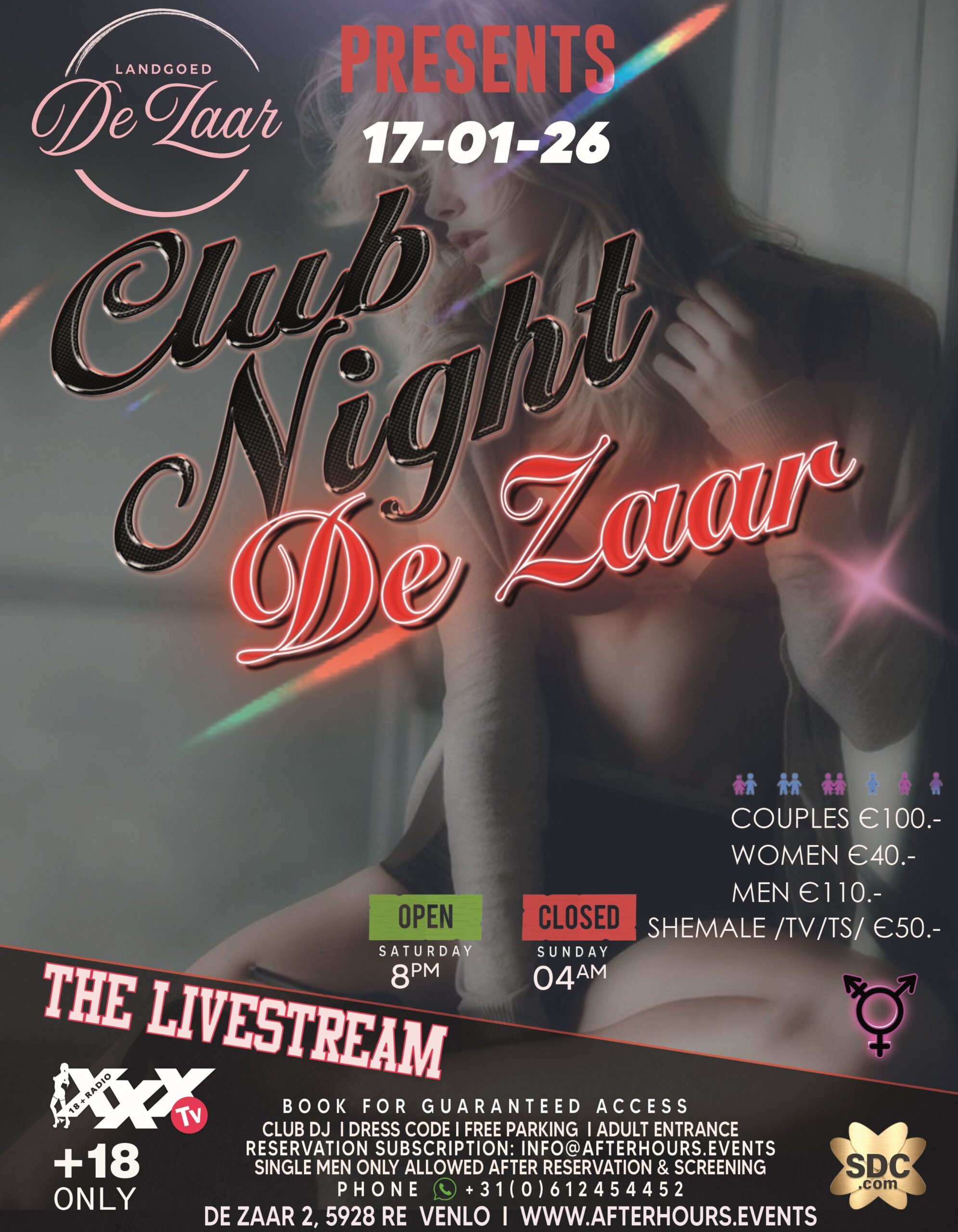 📅 03-01-26 AFTER HOURS 📍Nieuwjaars Borrel 2026 Welkom bij Parenclub landgoed "De Zaar" 📍Dresscode: fetish, kinky & sexy Party Time start 20:00 * 03-01-26 Till late ,🥁🥳 In een kleine setting met THE XXXRADIO LIVESTREAM (Jullie komen zelf niet in beeld). Wil je de uitzending bijwonen als swingers 💃🕺 reserveren kan dan via: info@afterhours.events Phone: 0031 612454452 www.afterhours.events 🥳🥁👀 Wie komt er naar onze erotische party met special Guest DJs 🎧 […]